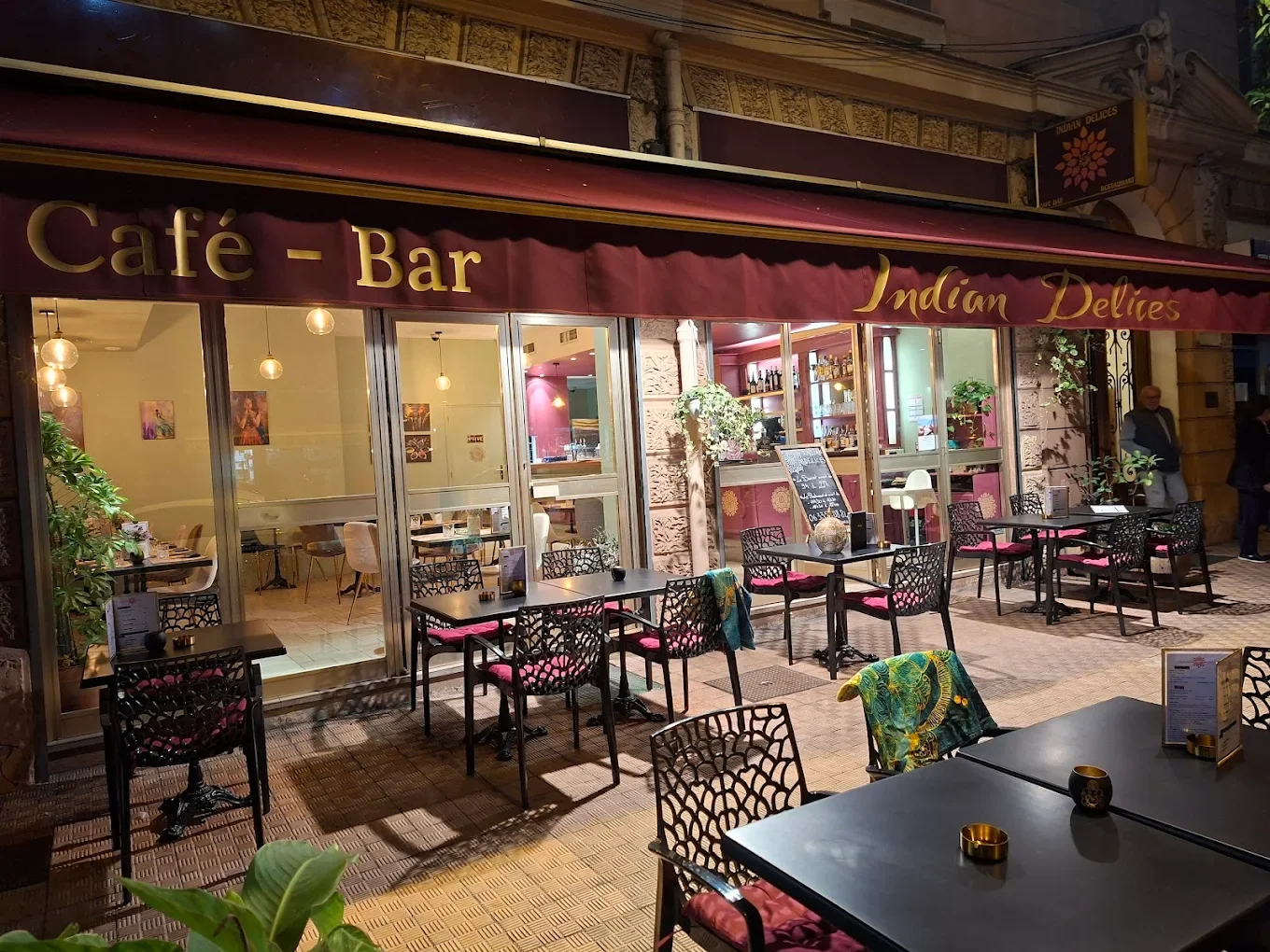 The venue is The Indian Délices, 10 Avenue Thiers, Menton.